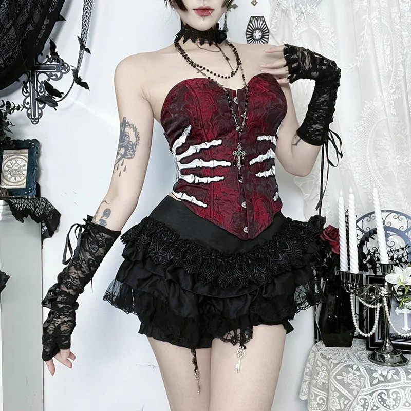 - Pair with a Flowing Skirt: Embrace the romantic and dramatic essence of Gothic style by pairing the corset top with a long, flowing skirt. Consider a black velvet or chiffon skirt, adding a touch of ethereal elegance.