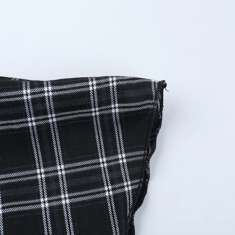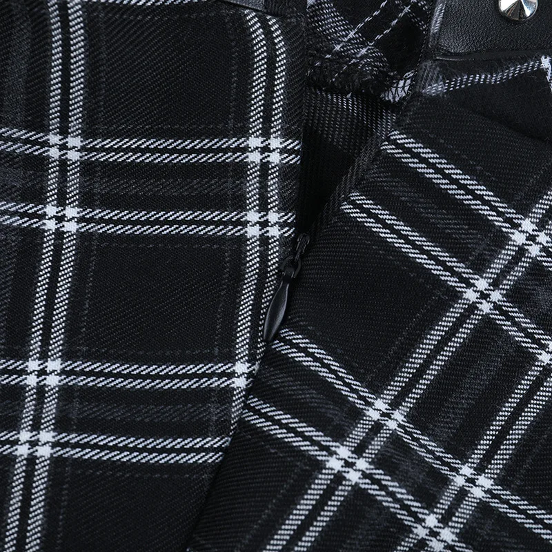 The skirt’s overall design suggests a blend of traditional tailoring with modern sensibilities. The clean lines and classic shape provide a foundation for incorporating the gothic flair via the chosen plaid. This combination suggests meticulous attention to detail and a commitment to crafting a garment that is both stylish and wearable. The balance between timeless design elements and the specific aesthetic provides this skirt with the potential to transcend seasonal trends, thus investing in this product.